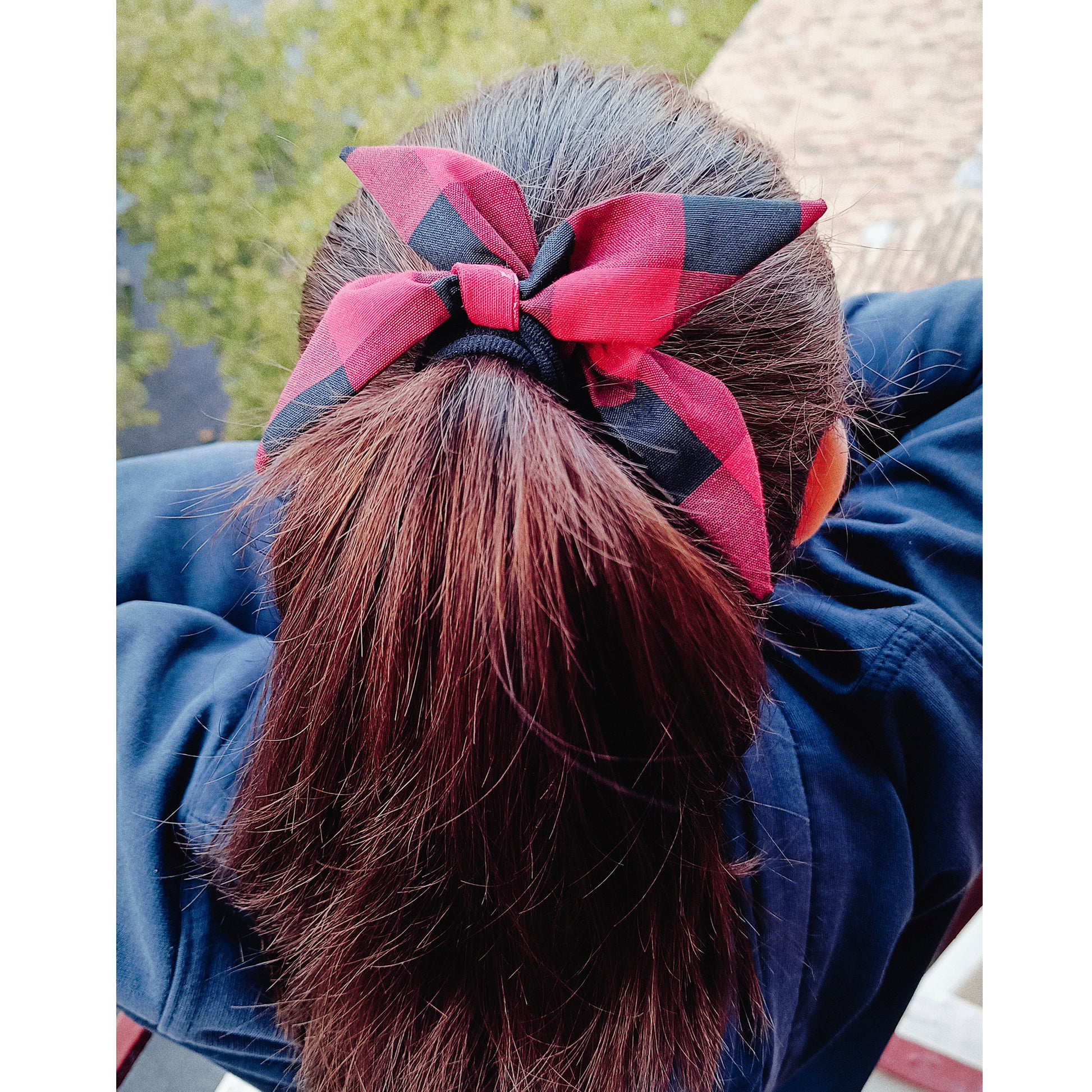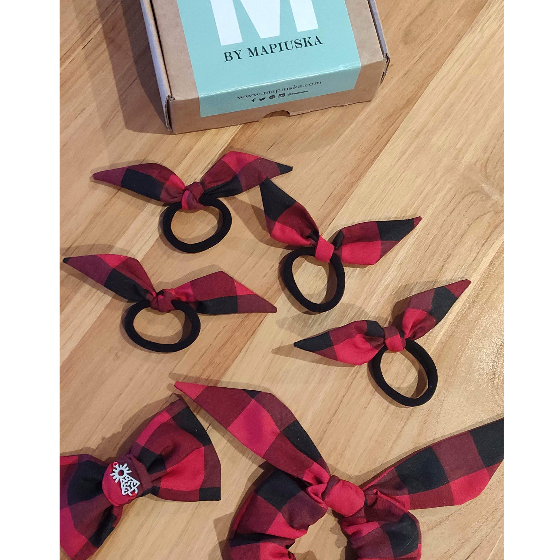 Goma de pelo con lacito en tela de cachirulo.